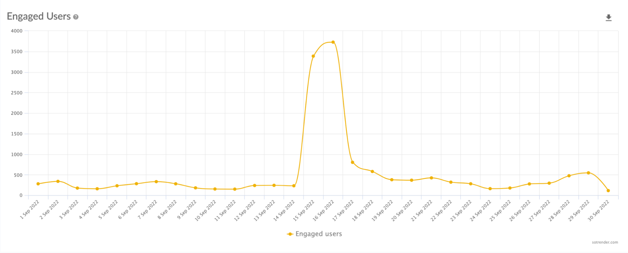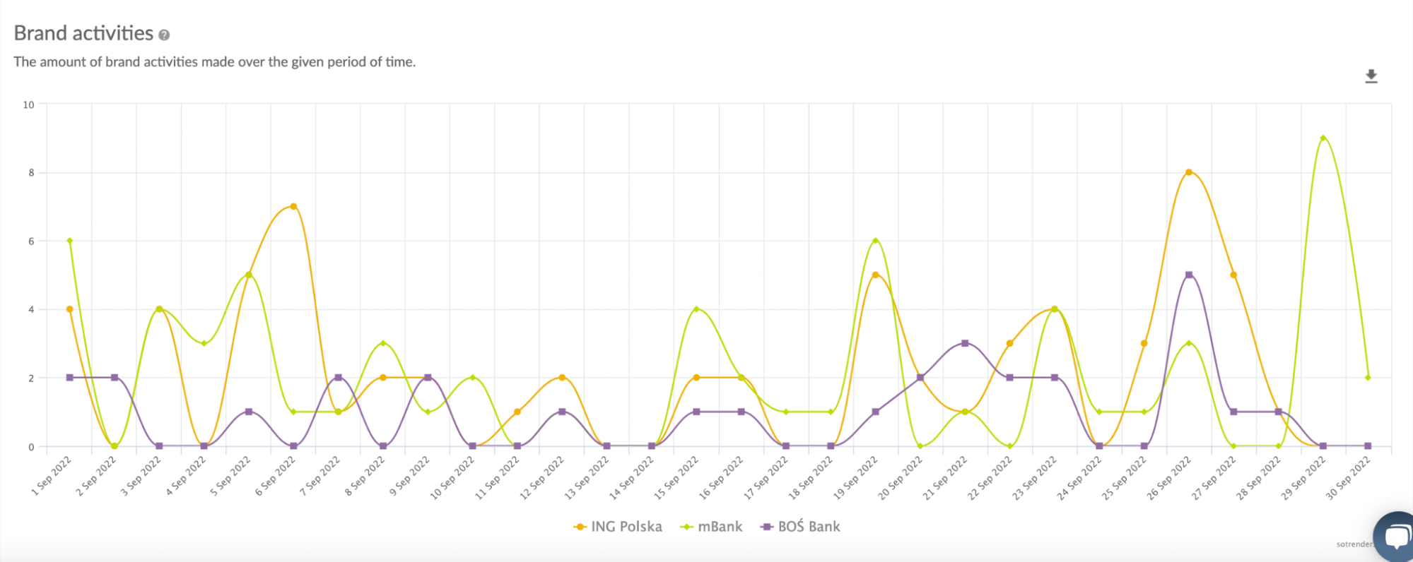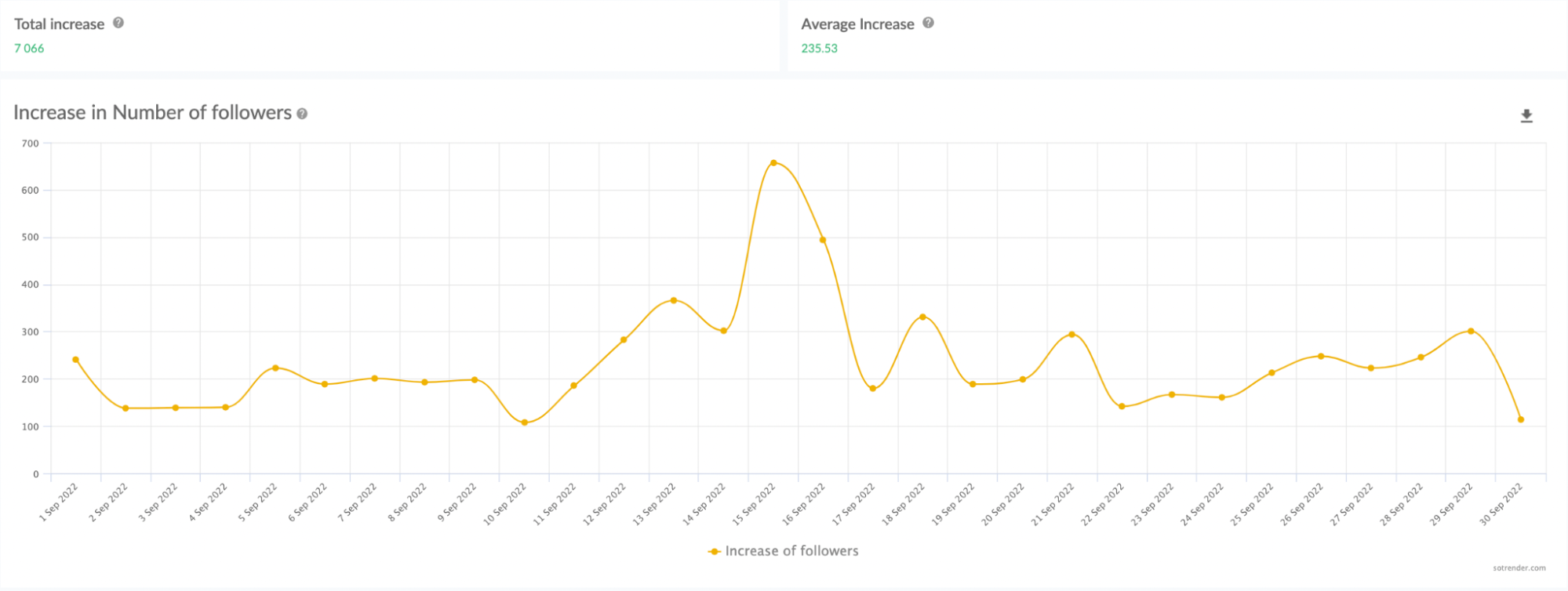 In Sotrender, you can track the number of followers as well as follower growth for any given time period. You can also see how the numbers changed on particular dates and analyze them thoroughly. This way, you can also easily compare your follower growth between different time gaps and draw conclusions about interest in your brand over time.