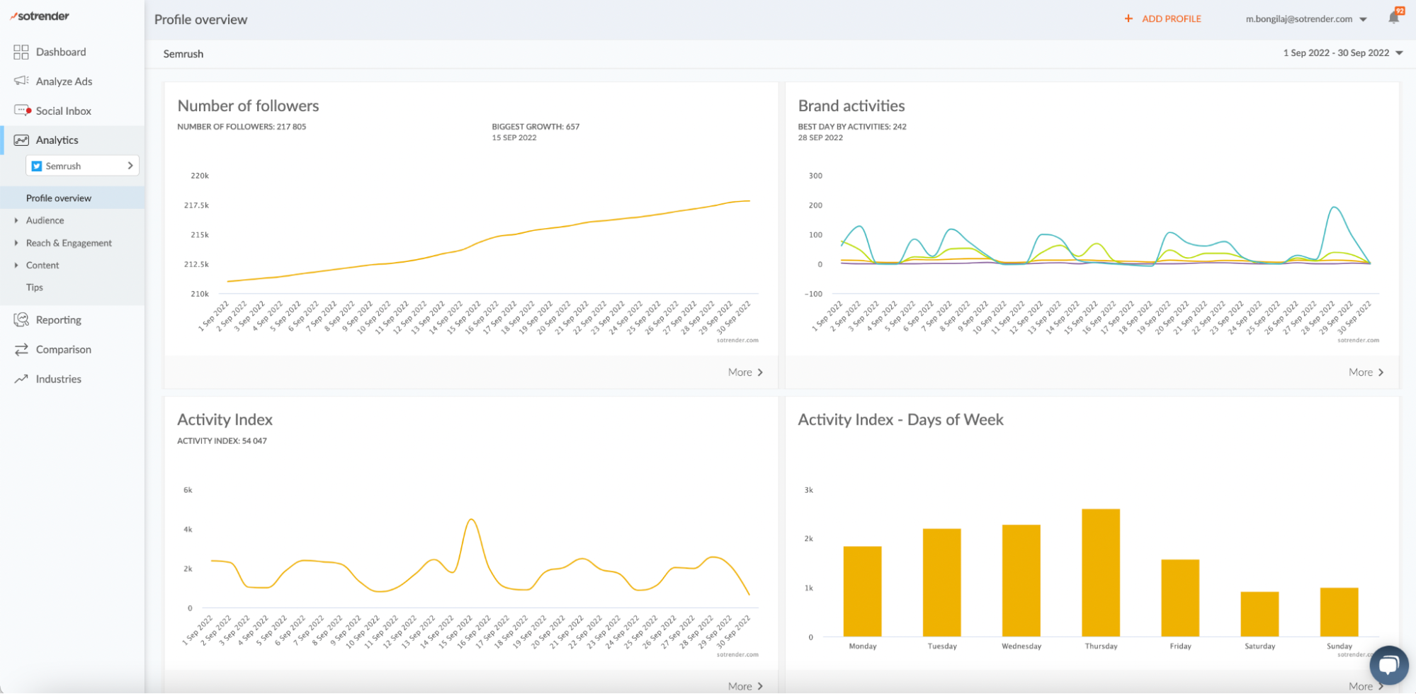 However, when using Sotrender, you need to set up your dashboard that helps you visualize the information you need and generate comprehensive reports that you can act upon.