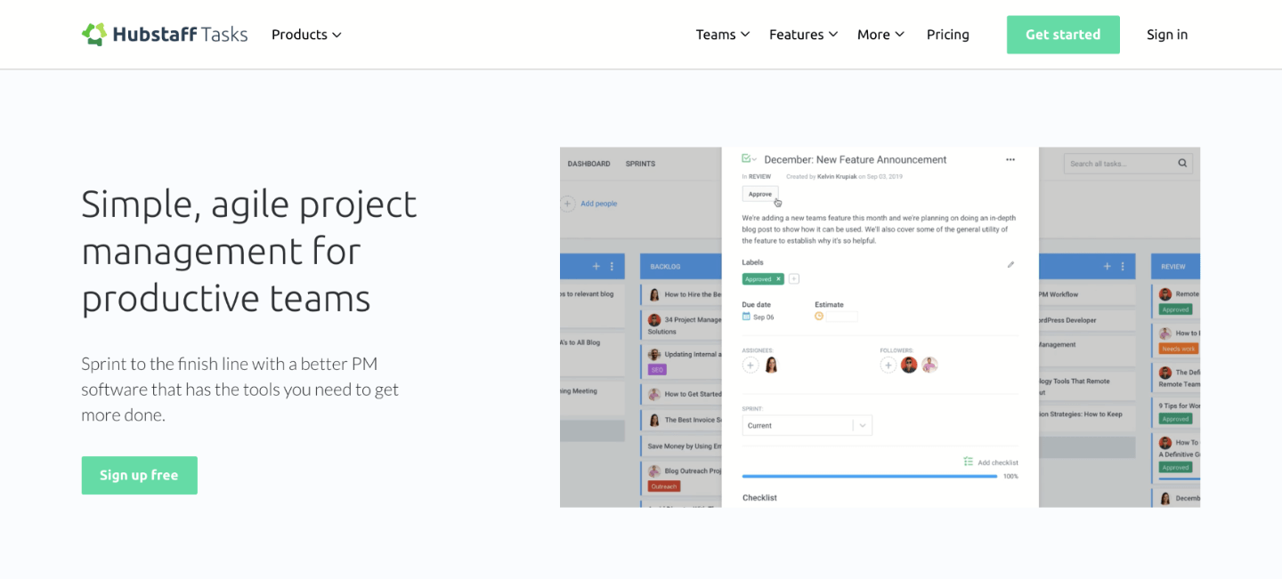 Hubstaff Tasks is a project management tool that lets you organize projects and tasks through an intuitive kanban interface. You can create task cards, move them to different project stages by dragging and dropping, and add custom labels to them. Hubstaff Tasks lets you efficiently finish projects without missing a single to-do.
