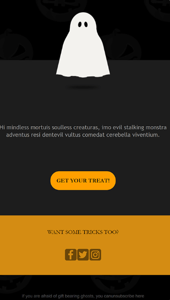 Another channel to complement your Instagram presence is email. During this season, add some haunting visuals to your emails. And you can easily tap into Halloween email marketing with relevant email templates. Halloween-themed templates save you time from creating visually appealing emails that reflect the holiday spirit.