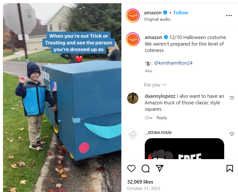 Here’s how Amazon featured a super cute video in its Reel showing a young fan dressed up as a Prime employee: