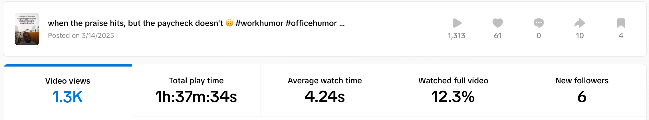 TikTok Studio goes a step further. It includes all the basics but adds more detailed insights, particularly at the post level.