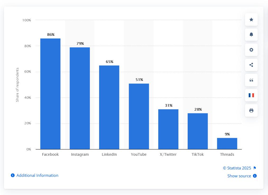 • LinkedIn → 65% (which comes third after Facebook and Instagram)