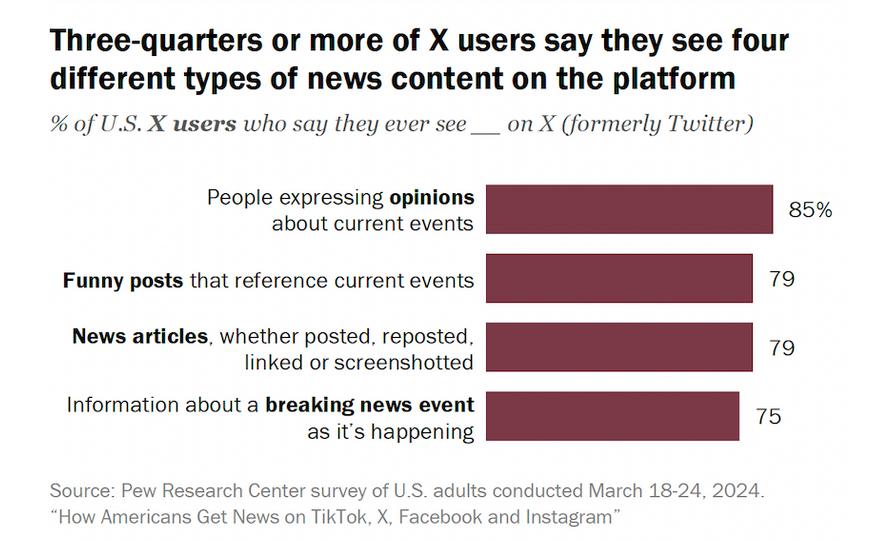 • News-hunters (In fact, 48% of X users scroll it for news.)