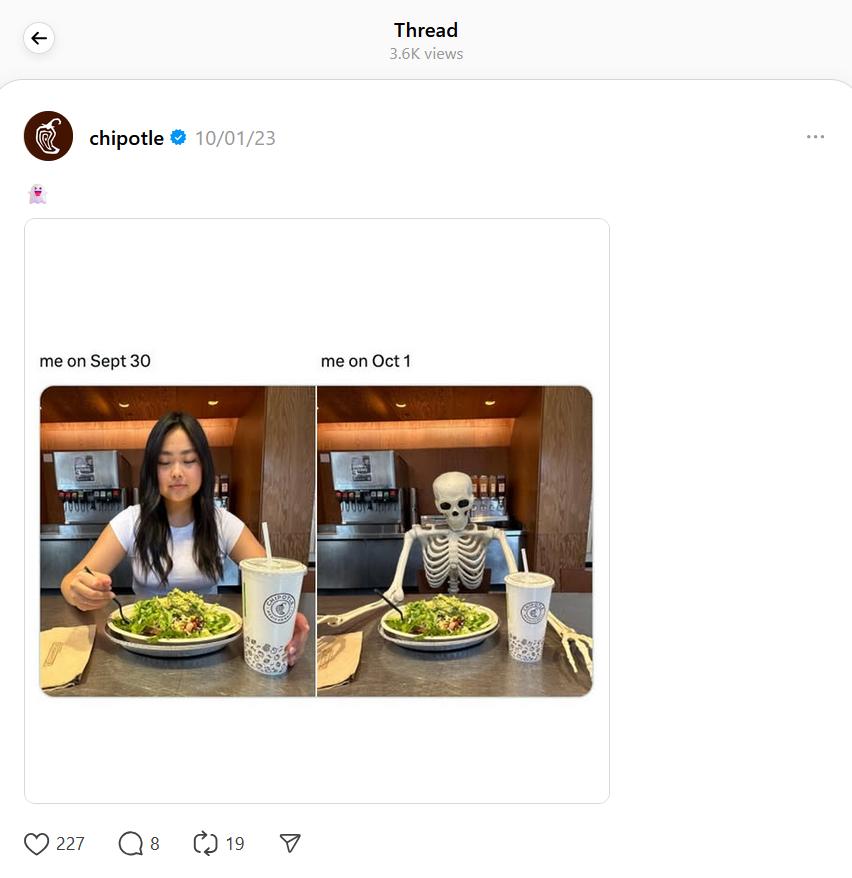 Check out this meme from Chipotle dedicated to Halloween.