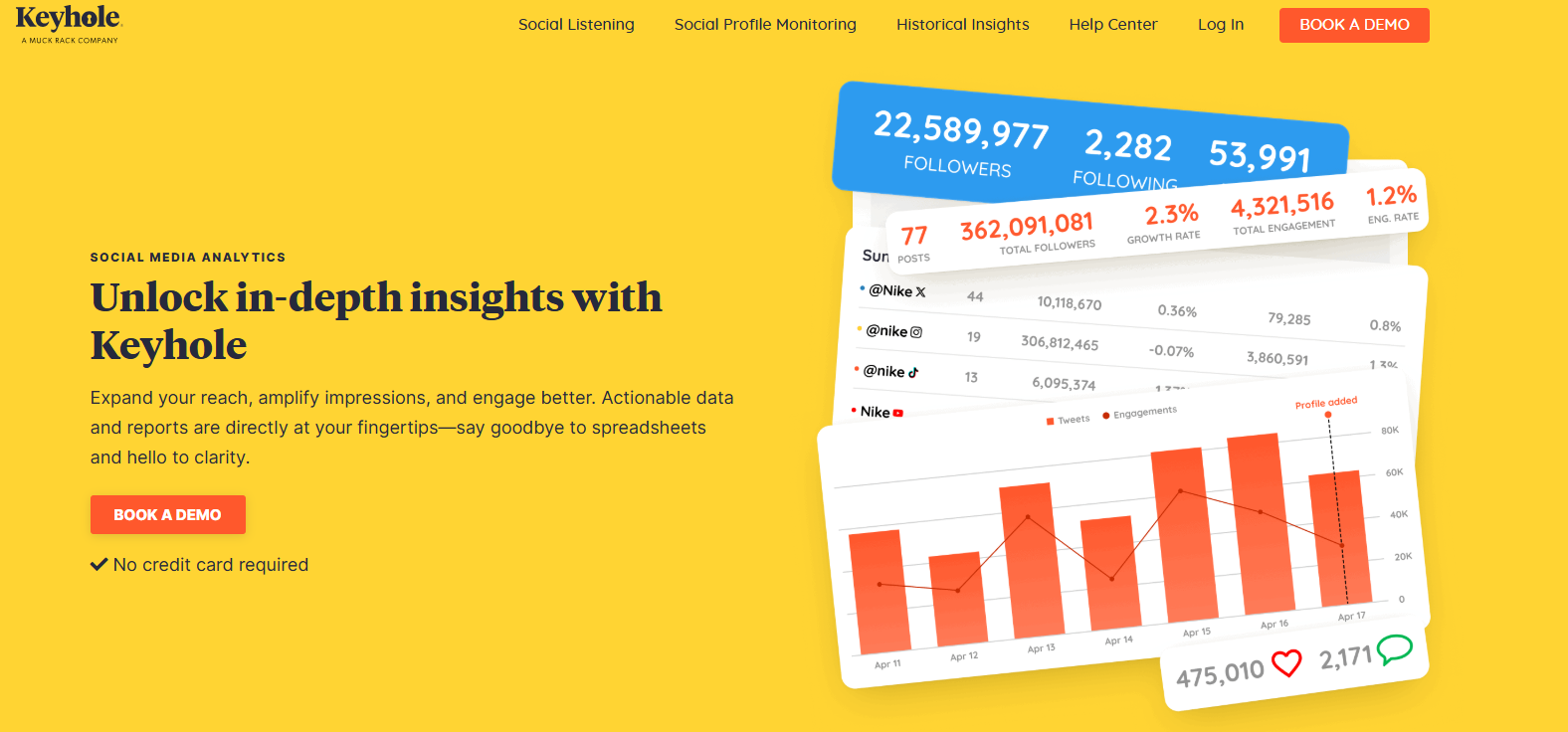 Keyhole works well for teams in need of simple analysis. The only drawback is that its best features sit in higher plans, and it’s not suitable for advanced Facebook analytics.