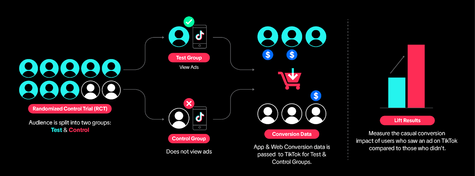 To prove impact with greater accuracy, TikTok offers Conversion Lift Studies. These studies compare a group exposed to your TikTok marketing or influencer campaign with a control group that didn’t see your ads.