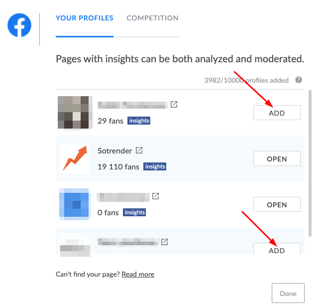 In Sotrender, you can add your own profiles and also competitors’ ones.
