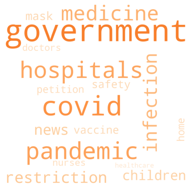 - Word clouds. They’re a simple way to illustrate what words regularly came up in a text. Based on the contents of the word cloud, you could conclude that the overarching topic that was popular in your comments was politics or medicine.