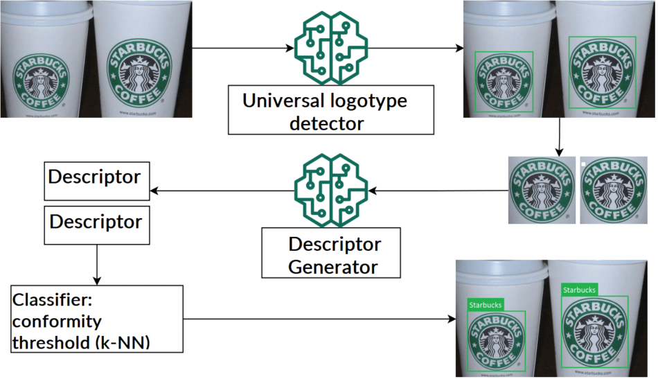 3. The descriptors of potential logos and brand reference descriptors get compared to classify the vectors from step 2.