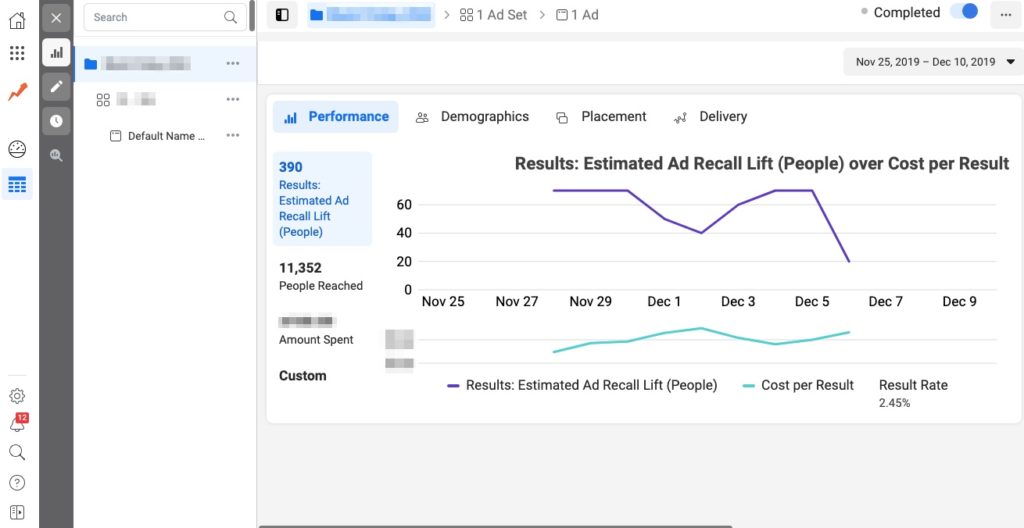What exactly do these metrics tell you? According to Facebook, estimated ad recall lift is a metric that indicates how many people would remember having seen your ad after two days. If your ad appealed to your audience, chances are that they’re going to remember seeing it. Ultimately, if your goal was to increase brand awareness or have more people learn about your product, then this is one of the metrics you should be checking.