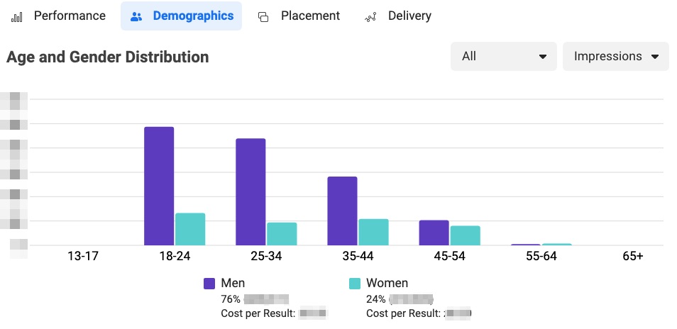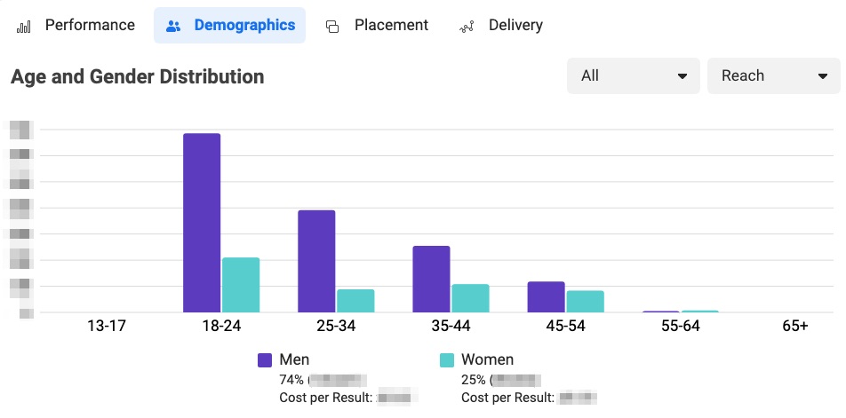 Okay, so you familiarized yourself with how to check the basic performance metrics. Now we’ll show you how to check who your ad managed to reach by the end of it. Click on the demographics tab and this is what you should see.