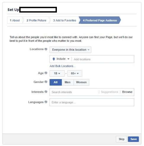 Define who your preferred audience is. Fill out their demographic info to help Facebook get you more reach to the right users.