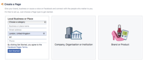 Creating Facebook Page - select a category first.2. Add your business details