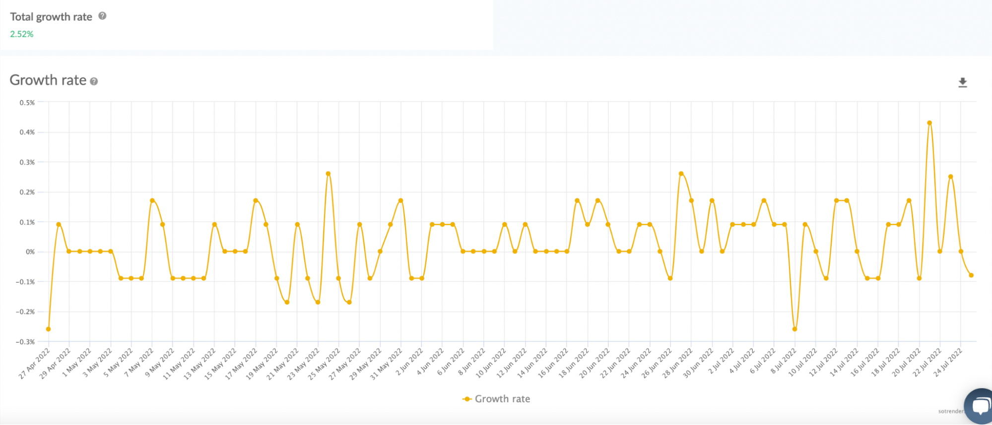 Below, you can see another chart that presents your profile’s growth rate. Basically, growth rate is an increase (or decrease) in the number of your followers, divided by the number of followers from the day before.