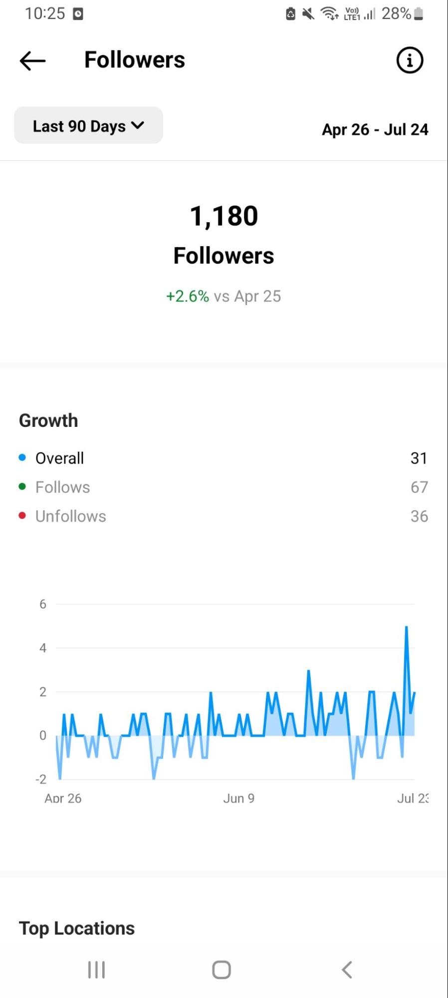 Now, see the number of followers for a selected time period. We have chosen ‘the last 90 days’ option to give you a clear idea of how it differs from Instagram Insights.