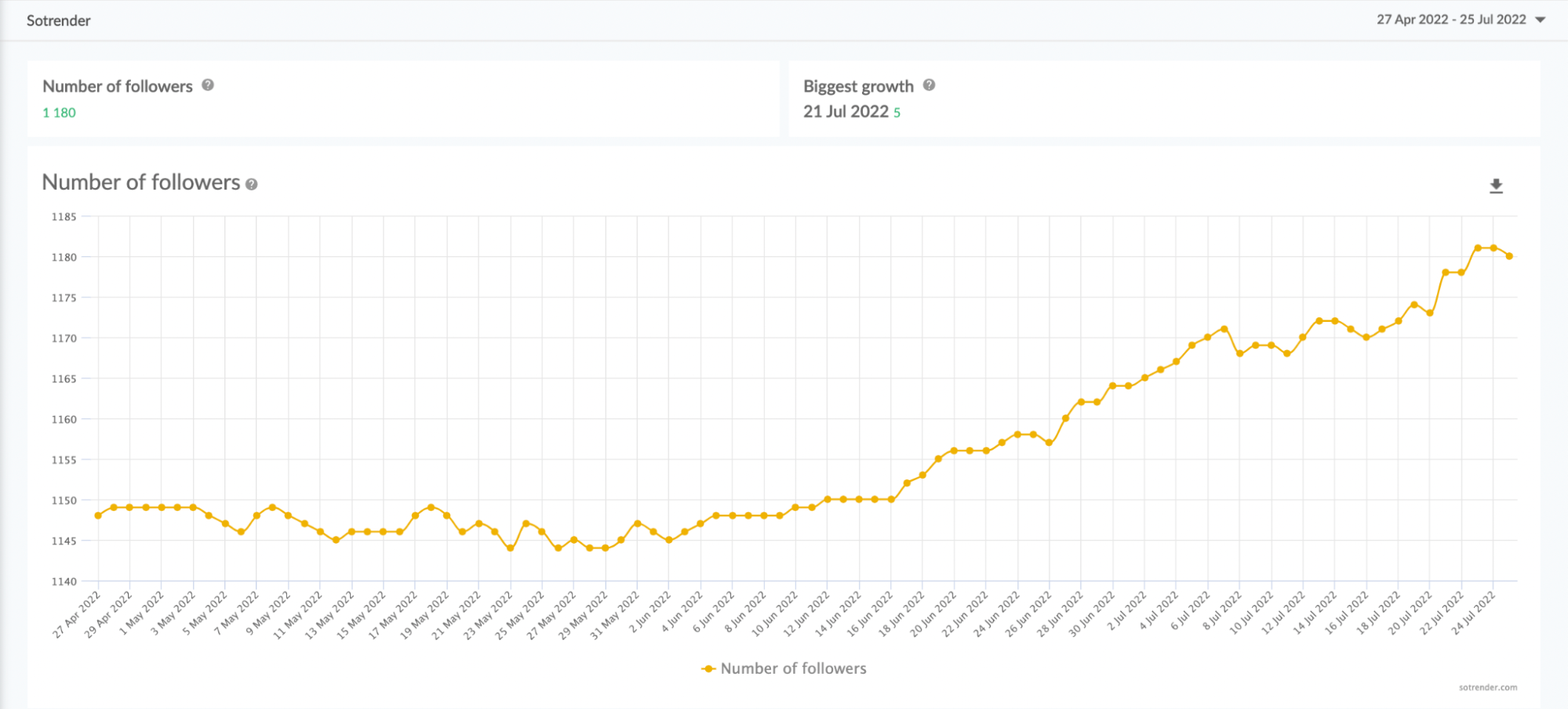 Since Sotrender’s charts are interactive, you can see a pin-point analysis depicting your follower growth over time. If you choose any single dot on the chart, you will see the number of followers on your profile for this date. What is more, if you click on it, you can check what exactly was posted on your profile on this day. This way, you can also understand which of your posts bring you new observers. If the follower growth is bigger than it usually is, it is likely that your publication contributed to this improvement.