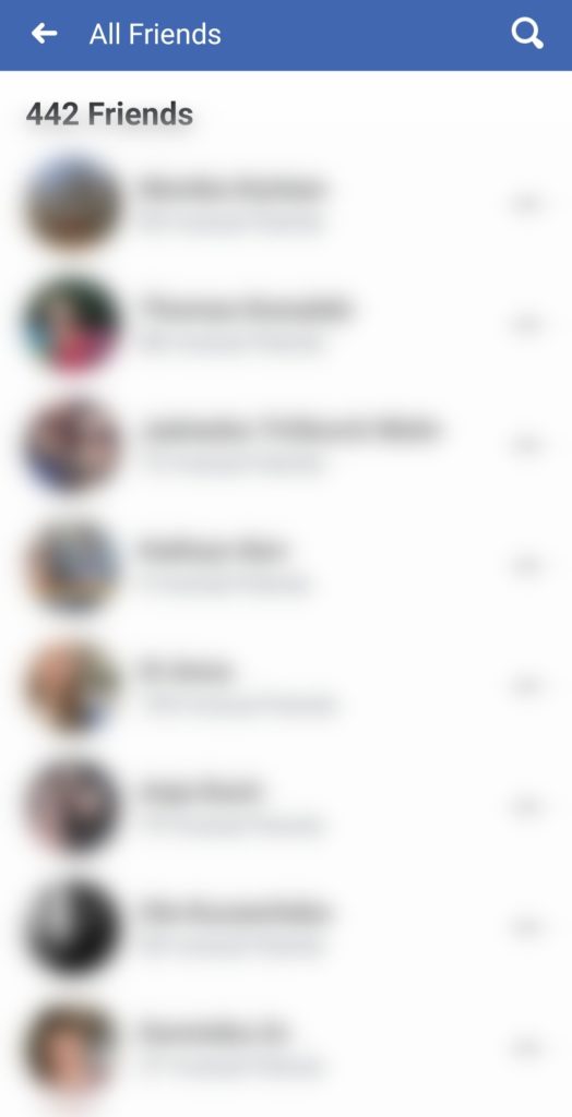 While on your mobile phone app, click on the three lines to see the app options. Among others, you will see the option Friends. Click on it and then, click on All Friends.