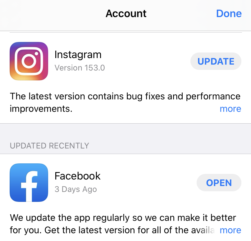 - On the list, you will first see apps that have new updates available. If you have Instagram there, and if you see the Update button, you need to update the app.