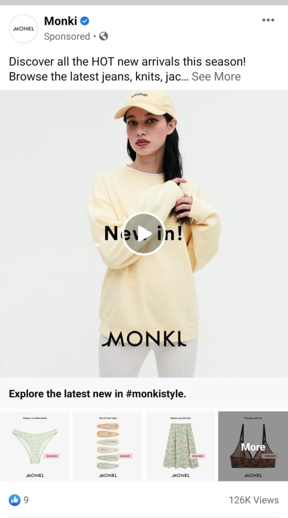 This Facebook ad format is a bit different from the rest because it’s primarily useful for online shops. Although you can’t use a CTA for this format, you can get users to open up each You get a chance to display your collection with a video at the top with your most popular products right underneath it. If you feel like displaying your products in a different way than a carousel, you might want to try out their grid or lifestyle layouts.