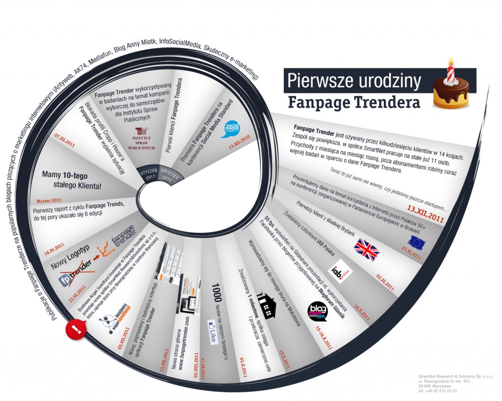 Dokładnie rok temu, 13 grudnia 2010 r., na konferencji Social Media Standard zaprezentowaliśmy narzędzie i wyniki badań polskich profili na Facebooku. Trzaskał wtedy mróz, wszędzie leżały zaspy śniegu, i tylko jedno wyglądało tak, jak dziś – wszyscy byli bardzo zainteresowani marketingiem na Facebooku.