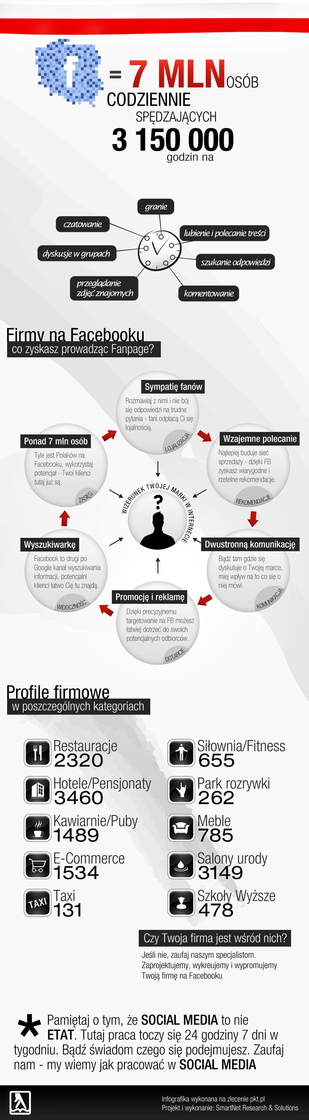 Przy okazji tworzenia infografiki dla Pkt.pl zebraliśmy dane o liczbie polskojęzycznych fanpage’ów. Zaskoczyło mnie, jak dużo polskich firm i instytucji już jest na Facebooku. Łączną liczbę polskich fanpage’ów z danymi teleadresowymi estymujemy na 71 tys. Ciekawa jest pokazana na infografice liczebność w poszczególnych branżach (wybranych przez Klienta – pkt.pl). Na polskim Facebooku mamy np. ponad 3, 5 tys. hoteli, moteli i pensjonatów, czy ponad 3 tys. salonów urody, fryzjerów i spa. Sporo? Na pewno więcej niż się spodziewałem. Wiele z nich nie ma nawet strony internetowej, najprawdopodobniej ograniczając swoją obecność w internecie do Facebooka (co osobiście uważam za słabą strategię, ale to zupełnie inny temat). Jasne, że niektóre z nich w ogóle nie prowadzą komunikacji lub robią to na bardzo małą skalę, traktując fanpage głównie jak wizytówkę – ale też nie liczmy, że zakład fryzjerski będzie miał koncept i budżet na poziomie Serca i Rozumu. Nie chodzi w końcu o to, żeby wytykać kto ma beznadziejny fanpage, ale o to, by pomóc tym potencjalnym klientom prowadzić sensowne działania i optymalizować zasoby przeznaczane na social media.
