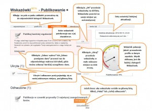 Każdą ze Wskazówek możemy ukryć lub odhaczyć jako przeczytaną za pomocą przycisku OK. Ukryte i odhaczone strony znikają z listy i pojawiają się na dole strony. Ukryte Wskazówki będą aktualizowane, jednak pozostaną mało widoczne, dopóki nie klikniemy przy nich „Pokaż”. Odhaczone Wskazówki pozostaną na dole strony tylko do kolejnej aktualizacji danych, po której wrócą na listę. Datę odświeżenia Wskazówek możemy sprawdzić nad wskaźnikiem po prawej stronie listy.