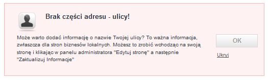 Pierwsza kategoria Wskazówek dotyczy elementów strony, o które należy zadbać, aby strona była profesjonalna i funkcjonalna. Znajdziemy tu komunikaty o polach w profilu, które należy uzupełnić, jak podstawowe informacje o profilu, dane kontaktowe czy link do strony www. Podanie takich informacji sprawia, że fanpage wygląda bardziej profesjonalnie, ale też ułatwia fanom kontakt z prowadzącym. Dowiemy się, czy zamieszczone zdjęcia profilowe i w tle mają odpowiednią wagę i rozmiary. Jeżeli nie mamy tzw. vanity URL, otrzymamy komunikat „Twój profil nie ma krótkiego adresu URL” i krótką instrukcję jak taki łatwy do zapamiętania i wyszukania adres ustawić. Narzędzie zwróci uwagę też na elementy naszej strony internetowej – czy są na nim przyciski i widgety, które łączą stronę internetową z kanałami social media – nie tylko Facebookiem, ale też Twitterem i YouTube.