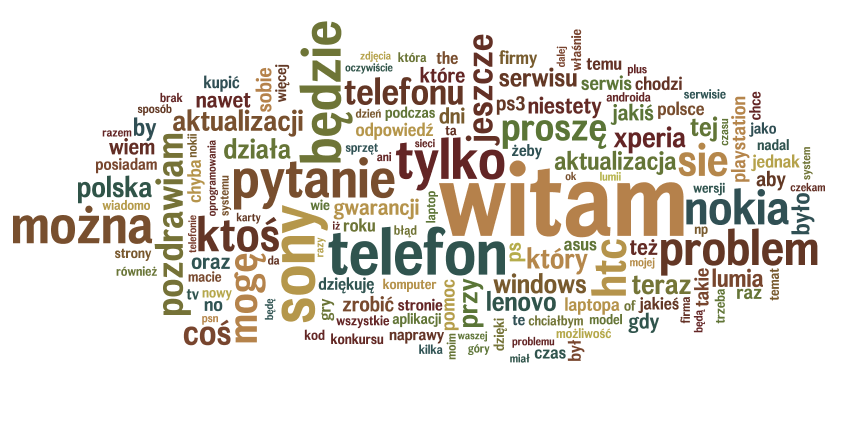 Obecność tagów “pytanie”, “problem” oraz “proszę” wskazuje, że użytkownicy często wykorzystują Facebooka jako kanał obsługi klienta albo szerzej mówiąc – szukają na fanpage’ach bezpośredniej pomocy. Jest to ściśle związane z obserwacją, jaką poczyniliśmy przy pisaniu raportu “Kryzys w czasach Facebooka”, mianowicie, że użytkownicy w sposób świadomy korzystają z internetowych kanałów komunikacji i coraz częściej właśnie tą drogą wyrażają swoje poglądy oraz szukają rozwiązań problemów.