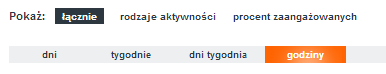 Aby uzyskać dokładne dane dotyczące poszczególnych pór aktywności fanów, wystarczy kliknąć w kartę “Zaangażowanie”. W ten sposób uzyskujemy dostęp do danych obrazujących zaangażowanie w podziale na dni tygodnia oraz godziny. Dane w ujęciu dziennym i godzinowym można zobaczyć także w zakładkach dedykowanych Rodzajom aktywności oraz Interactivity Index.
