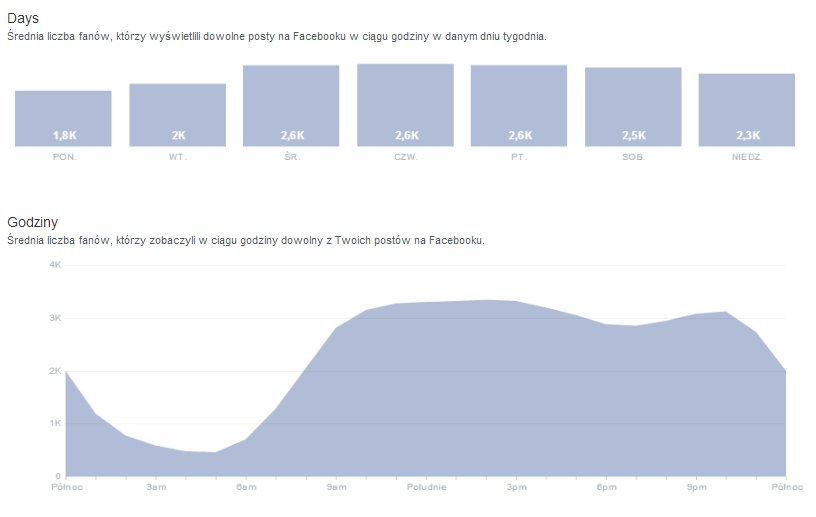 Fani poszczególnych stron mogą mocno się różnić zarówno pod względem wieku czy miejsca pochodzenia, jak i dni i godzin korzystania z Facebooka. Najnowsze Facebook Insights dostarczają informacji na temat tego, ilu fanów danej strony w danym okresie i o określonej porze zobaczyło opublikowany post.