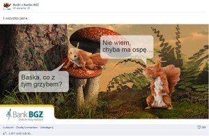 Swoją pozycję umacniają Baśki z Banku BGŻ, o których pisaliśmy w ubiegłym miesiącu. Szybkość zyskiwania przez stronę nowych fanów co prawda nieco spadła, bo w ubiegłym miesiącu ich liczba wzrosła o 39%, ale i tak pierwsze miejsce Basiek w rankingach zmiany liczby fanów oraz liczby zaangażowanych na profilach bankowych jest zupełnie niezagrożone.