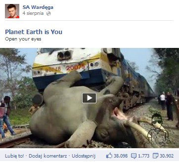 Najbardziej interaktywnym postem w sierpniu był wpis SA Wardęgi, zawierający film o tematyce proekologicznej. Interactivity Index materiału osiągnęło wartość 520 tys., dzięki czemu wpis Wardęgi stał się drugim postem w historii #Fanpage Trends, któremu udało się przekroczyć wartość 500 tys. Interactivity Index. Wart zauważenia jest również fakt, że w sierpniu SA Wardęga nie publikował charakterystycznych dla siebie śmiesznych materiałów, ale skupił się właśnie na zamieszczaniu gotowych już treści.