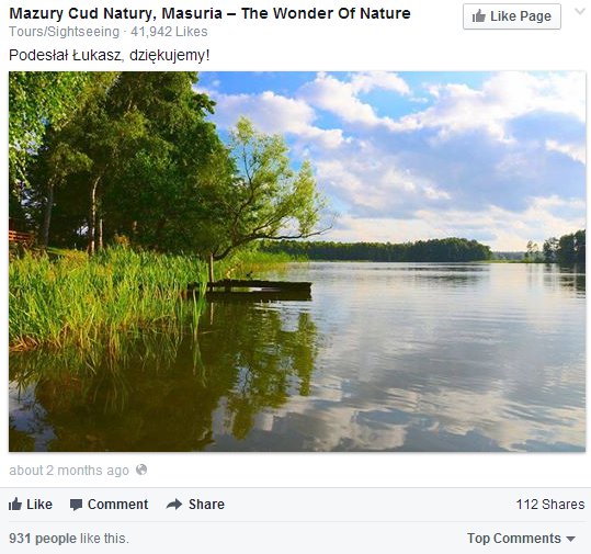 Autorem drugiego najbardziej interaktywnego wpisu, którego Interactivity Index wyniosło 3003 była Małopolska. Profil Mazury Cud Natury opublikował dopiero trzeci post o najwyższym Interactivity Index w analizowanym okresie, wynoszącym 2843.