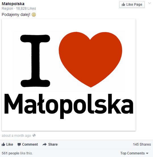 Hashtagi najczęściej wykorzystywane na profilach poświęconych regionom w okresie wakacyjnymCo ciekawe, najbardziej interaktywny post wcale nie został opublikowany ani przez jeden z pierwszej trójki najbardziej angażujących ani interaktywnych profili regionalnych. Jego autorem był profil, który w rankingu pod względem Interactivity Index, czyli autorskiego wskaźnika Sotrendera zliczającego wszystkie aktywności dziejące się w obrębie fanpage’a, uplasował się na pozycji 7., czyli Świętokrzyskie. Interactivity Index tego postu wyniosło 4357.