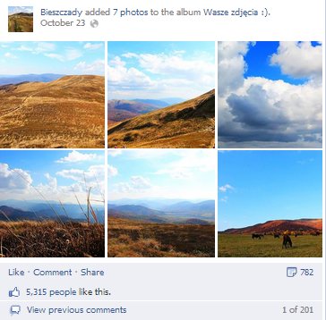 Jeden z wpisów opublikowanych przez profil poświęcony Bieszczadom