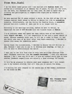 4. (Too) Speed Networking: specjalne sesje, które miały pomóc startupom poznać się z inwestorami i mediami zainteresowanymi daną tematyką. Moja sesja okazała się kompletną porażką: Pani z mediów, która chyba zresztą tak naprawdę nie miała nic wspólnego z mediami w towarzystwie 2 inwestorów i 20 startupów, które natychmiast ustawiły się w kolejce do inwestorów i w większości nie chciały tracić czasu na rozmowy z innymi startupami. Próby ułatwienia networkingu ze strony organizatorów spełzły na panewce…
