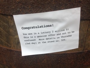 Nam udało się przyciągnąć trochę osób do stoiska dzięki wlepkom umieszczanym w różnych dziwnych miejscach, zwłaszcza w ubikacjach.