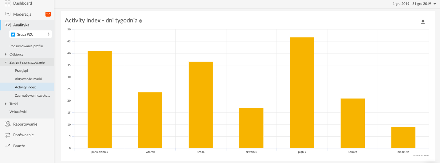 Activity Index dla Instagrama przedstawiony jest także w ujęciu dziennym.