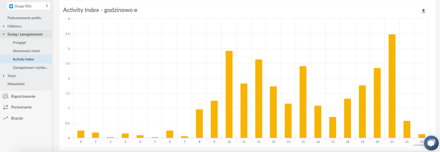 Interactivity Index oraz Activity Index to autorskie wskaźniki dostępne w Sotrenderze, informujące o łącznym zaangażowaniu na wybranym profilu social media.
