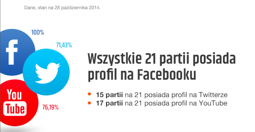 Badanie objęło aktywności 21 partii i zostało przeprowadzone w okresach 04.08 – 31.10.2014 (email), 04.08 – 16.11.2014 (media społecznościowe) oraz 25.10 – 16.11.2014 (wyszukiwarki).