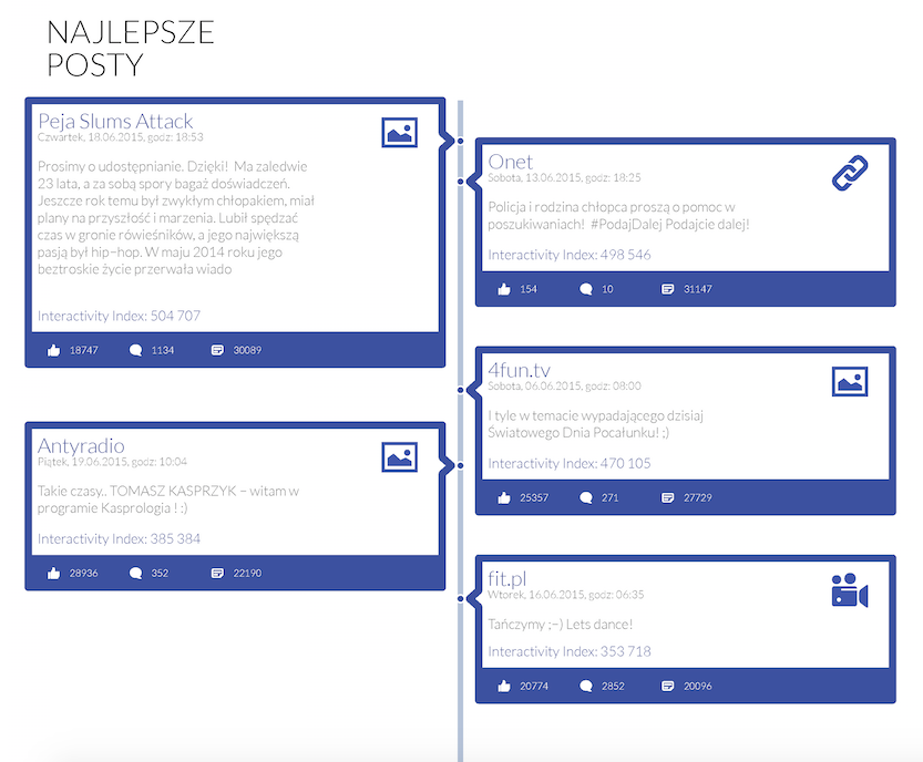 Podobnie jak w przypadku YouTube i Twittera, również na Facebooku w czerwcu panował mniejszy ruch niż w maju. Liczba postów opublikowanych przez administratorów stron oraz użytkowników serwisu spadła o 3, 4%, natomiast średnia liczba udostępnień postów spadła o 21, 3%, a komentarzy pod postami – o blisko 5%. Ponadto strony komercyjne użyły w czerwcu o 4% mniej hashtagów. Autorem najlepszego posta czerwca została strona Peja Slums Attack, a wraz z nią na podium znalazły się również Onet i 4fun.tv. Co jeszcze działo się na Facebooku w minionym miesiącu? Zapraszamy do lektury najnowszego wydania Fanpage Trends przygotowanego przez Sotrender!