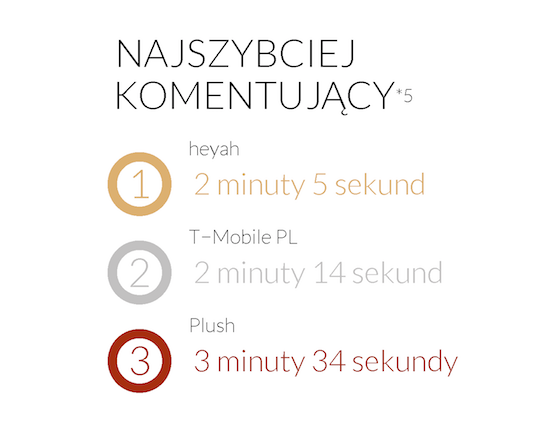 Zawsze podkreślamy, że obsługa klienta jest jednym z najważniejszych aspektów obecności marek w mediach społecznościowych i dlatego w Sotrenderze bacznie przyglądamy się, jak radzą sobie z nią analizowane przez nas strony. W czerwcu największy wzrost pod względem procentu odpowiedzi na posty użytkowników zaliczyła strona Dzień Dobry TVN (skok z 1% na 22% odpowiedzianych postów). Druga była Schaffashoes.pl (z 9% do 26%) a trzeci Microsoft Lumia Polska (z 59% do 73% odpowiedzianych postów). W czerwcu obsługa klienta najbardziej pogorszyła się na stronie beGLOSSY (spadek z 83% do 55% odpowiedzi na posty użytkowników), Agito.pl (z 77% do 51%) oraz na stronie prowadzonej przez PolskiBus.com – Szybko Tanio Komfortowo (z 93% do 74% odpowiedzi na posty). Z kolei na podium najszybciej odpowiadających na posty użytkowników w czerwcu nie było większych zaskoczeń. Na pierwszym miejscu z wynikiem 2 min i 5 sekund uplasowała się Heyah, która o 9 sekund wyprzedziła T-Mobile PL. Ostatnie miejsce na podium zajął Plush, który odpowiedzi a zapytania użytkowników udzielał w czerwcu średnio po 3 min i 34 sekundach.