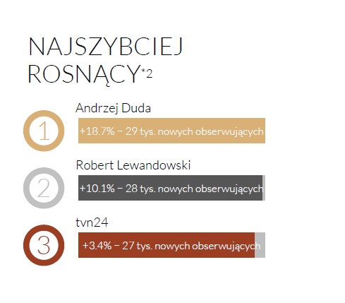 Kolejny miesiąc z rzędu Andrzej Duda na Twitterze nie ma sobie równych. W listopadzie, tak jak w październiku oraz we wrześniu był najlepszy pod względem liczby retweetów na profil oraz liczby polubień tweetów. Z kolei pod względem największej liczby tweetów wśród 10 najlepszych wpisów miesiąca trzy miesiące z rzędu najlepszy był Robert Lewandowski. W minionym miesiącu autorem najlepszego tweeta był właśnie Lewy. Autorem drugiego najpopularniejszego wpisu był z kolei… Duda. Dla odmiany we wrześniu, październiku oraz listopadzie pod względem największej liczby tweetów wśród 100 najlepszych wpisów miesiąca liderem był idol nastolatek – Dawid Kwiatkowski. Obserwujemy walkę wszystkich panów z wypiekami na twarzach, kibicujemy i…analizujemy!