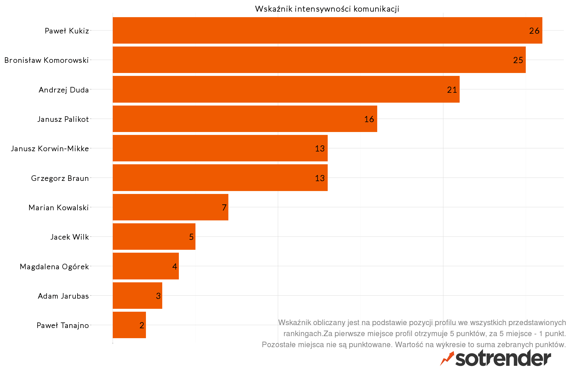Wskaźnik intensywności komunikacji kandydatów na prezydenta w meidach społecznościowych – raport Sotrendera