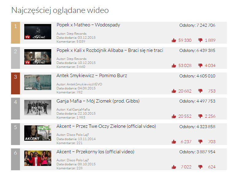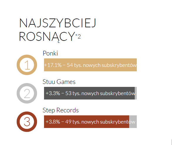 Kanał Step Records jest pierwszym z obserwowanych przez Sotrendera polskojęzycznych kanałów, który przekroczył miliard wyświetleń. Dużą rolą w tym osiągnięciu miał właśnie Gang Albanii i Popek. Również w grudniu produkcje Step Records były najczęściej wyświetlane na YouTube – ponad 62 mln razy. Jednak w przypadku innych ważnych kategorii – zaangażowania i aktywności – muszą uznać wyższość vlogerów gamingowych, których mocną stroną zawsze było budowanie społeczności.