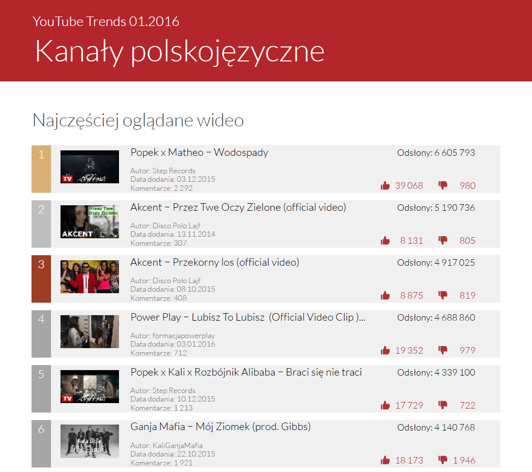 Najczęściej oglądane wideo na YouTube w stycznieu 2016 - YouTube Trends Styczeń 2016