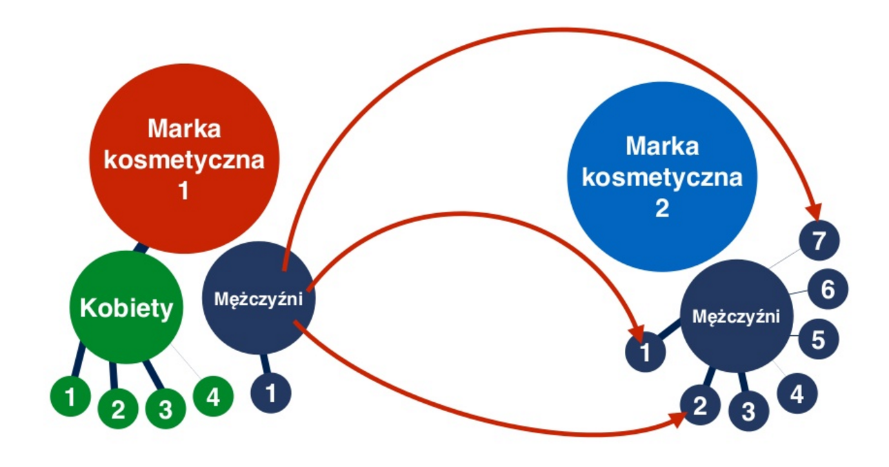 Chcieliśmy dowiedzieć się, czy skoro na stronie marki 1 mamy tylko 20% treści skierowanych do mężczyzn, a ta grupa docelowa jest aktywna na stronie, to czy marka 1 “traci” zaangażowanie tych fanów na rzecz marki 2? Okazało się, że tak.