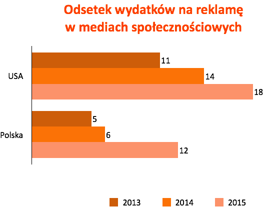 Rynek reklamy online w Polsce stale rośnie. Wg badania IAB Polska/PwC AdEx 2015 w Polsce w latach 2008-2015 rósł on przeciętnie o niemal 15% rocznie, w 2015 przekraczając po raz pierwszy 3 mld zł. Zarazem w naszym kraju ciągle mały jest udział social media w ogóle wydatków online (12% w 2015 w porównaniu do 18% w USA), choć szybko rośnie. Nawet ten kilkunastoprocentowy udział to niewiele, biorąc pod uwagę, że zdecydowana większośc użytkowników internetu korzysta intensywnie z social media i spędza tam coraz więcej czasu. W analizach wydatków na social media brakuje też szacunków dotyczących podziału wydawanych kwot pomiędzy poszczególne platformy (choć można się domyślać, że najpopularniejszy serwis społecznościowych, jakim jest Facebook, skupia też większość wydatków), nie mówiąc już o szacunkach dla poszczególnych branż czy marek.