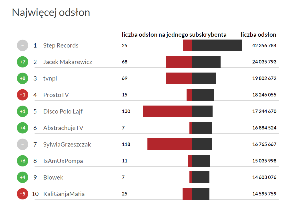 Najwięcej odsłon kanału w miesiącu - YouTube Trends lipiec 2016